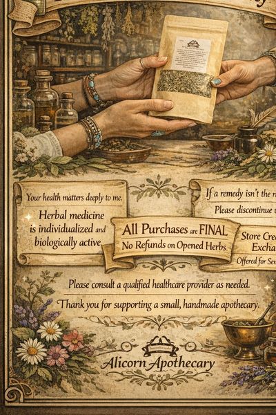 I do not offer refunds on ingestible or topical herbal medicines once they have been opened or used.